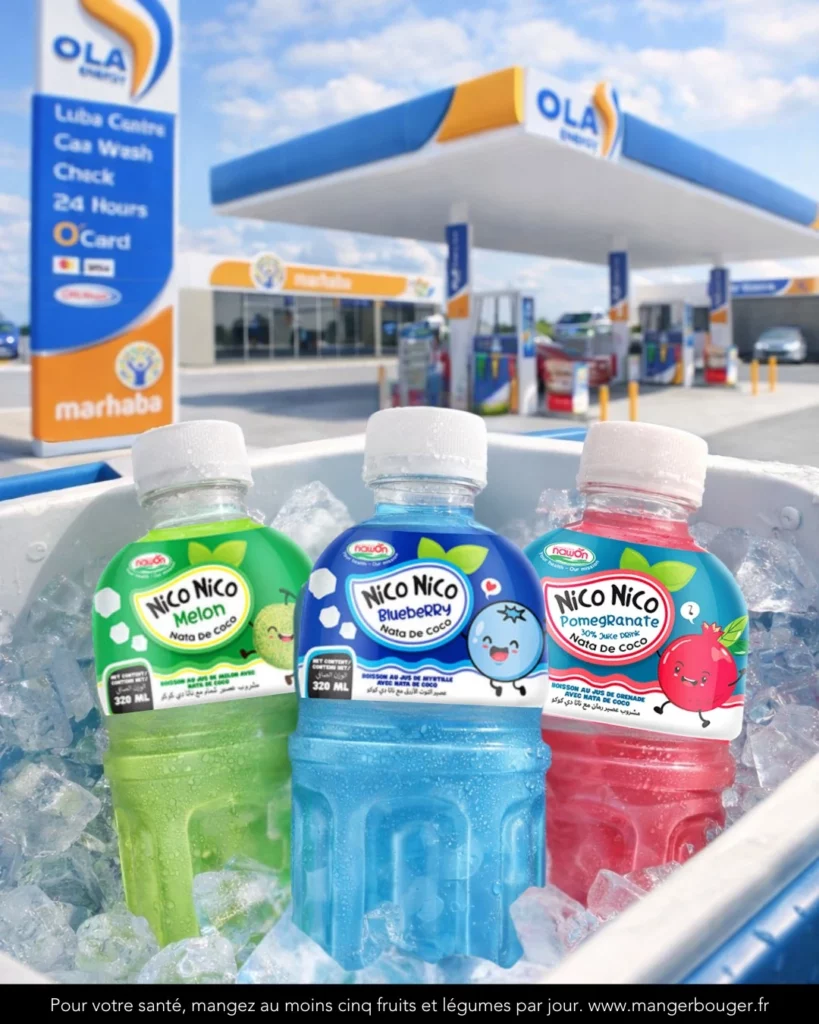 Du 12 au 31 janvier 2026, Sodirel accompagne une activation autour de la gamme Nawon – Nico Nico (Nata de Coco), déployée dans les stations Ola Energy La Réunion participantes.