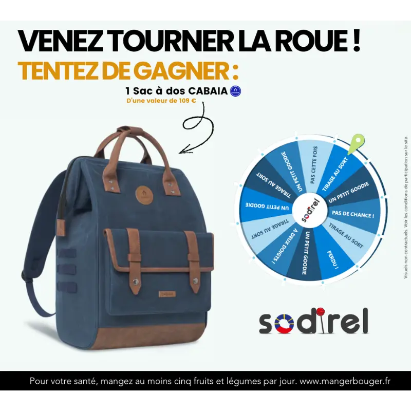 une roue à tourner permettant de gagner des cadeaux, dont un sac Cabaïa et divers goodies,